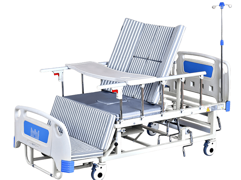 Manual Lateral Turning: The mattress platform features a split-section design that allows caregivers to manually rotate the patient to either side. This function is essential for relieving pressure on the back and preventing the development of pressure ulcers (bedsores).