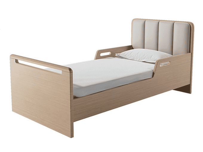 Sleek Footboard Design: The low-profile footboard features an integrated horizontal cut-out handle, facilitating easy sheet changes and bed positioning by caregivers.