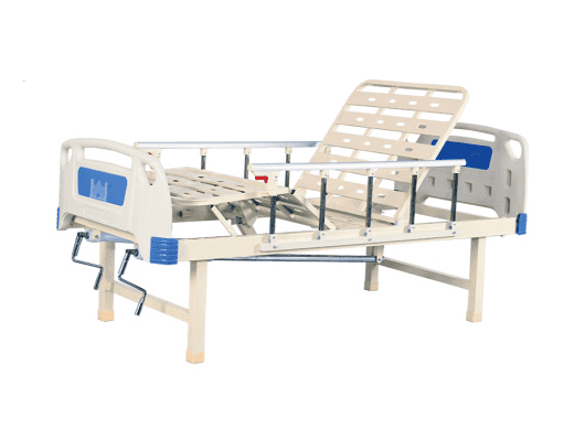 Backrest Lift (背部升降): The back section can be manually adjusted via a crank to support patient respiratory health, facilitate upright sitting for meals, and enhance overall comfort.
