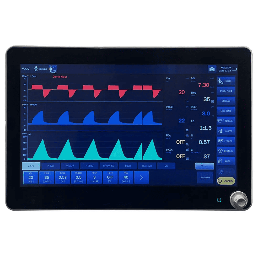 | Tidal Volume | 20ml – 2000ml (Adult & Pediatric Support) |