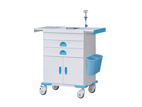 • High-Stability Mobility: Built on a robust four-point base with four premium medical-grade swivel casters. The front casters are equipped with independent braking systems to ensure the trolley remains perfectly stationary during critical bedside procedures.